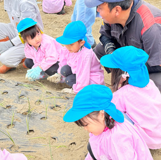 5月16日 いも植えmakuyou-egao2024年5月17日読了時間: 1分幼稚園の畑で、農協青年部の方達のご協力のもと、いも植えを行いました。優しいお兄さんたちに、おいもや玉ねぎの植え方を教えてもらいながら、真剣な表情や楽しそうな表情がたくさん見られました!!畑での撮影ということで、スペースが限られており、また、植える時には下を向いていることが多いため、お顔があまり写っていないものもありますが、ご了承ください。